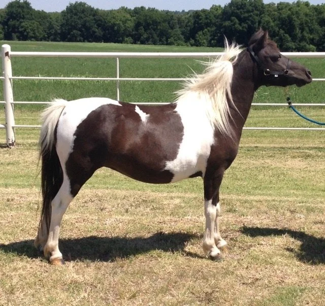 Her sire, Springer Farms Hot Wire, is a true legend in the miniature and Shetland world. Hot Wire has solidified his place in history as the sire of multiple National and Congress STAKES Champions, along with numerous National and Congress Halter Champions. Known for consistently passing on refinement, balance, and a natural brilliance, he has stamped his mark on his offspring—and Sugar Baby is a shining example of his legacy.